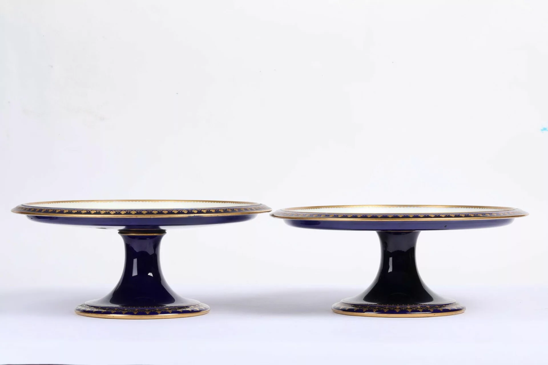 Bộ hiện vật đồ sứ dát vàng dưới đây được vua Khải Định đặt hàng tại Pháp vào tháng 5-1922, nhân chuyến công du đến Pháp dự hội chợ thuộc địa tại Marseille (lần đầu tiên một vị vua triều Nguyễn ra nước ngoài) – Trang trí: dát vàng ngay tâm dĩa và trên thân các hiện vật khác- một vương huy (huy hiệu riêng của hoàng đế); có chữ hán “Khải Định” – Do hãng DORE’A SERES – năm sản xuất 1922.