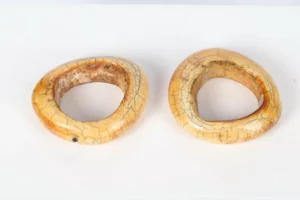 Bông tai ngà là trang sức đặc trưng của các dân tộc Tây Nguyên, thể hiện địa vị và sự giàu có. Làm từ ngà voi – vật liệu quý giá và thiêng liêng, chúng thường có dạng hình trụ hoặc đĩa tròn lớn, đeo trên dái tai đã được căng rộng. Bông tai ngà được sử dụng trong các dịp lễ hội quan trọng, được xem như vật gia truyền và hiếm khi bị bán đi. Họ đeo không chỉ vì giá trị cao mà còn vì sự tôn trọng và cảm thông dành cho loài voi. Để đeo được những chiếc bông tai này, người dân thực hiện tục căng tai từ khi còn nhỏ, thể hiện bản sắc văn hóa và thẩm mỹ của cộng đồng.